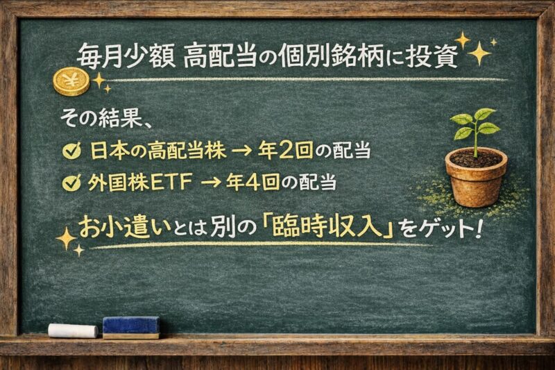 少額ですが、外国株ETFや日本の高配当株式への投資を始めました。