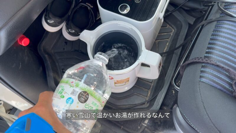 これを使ってカップラーメンを家族分作っていきます。今日は作りませんでしたが、寒い雪山で食べたいものランキング第2位(いろどりの個人的で偏見たっぷりの調査結果)であるカレーなんかも温めることができちゃいますので、次回はそれをやりたいと思います(笑)