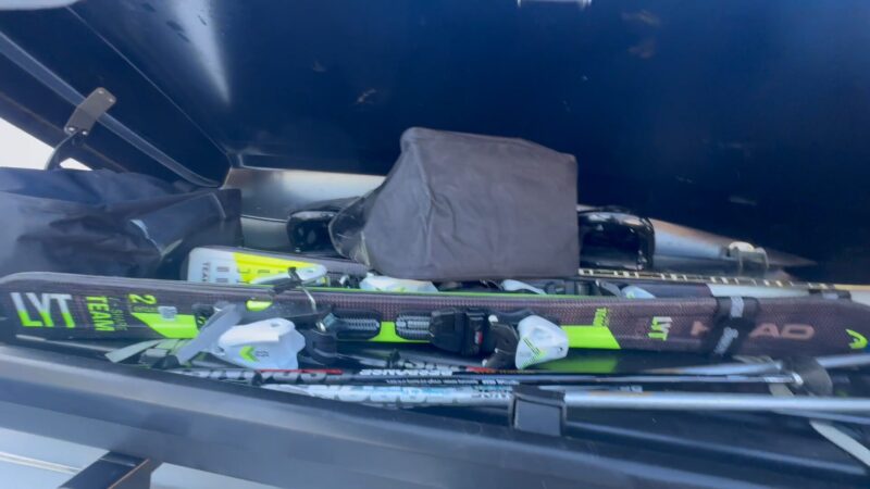 スキー板、スノーボード、ブールなどをキャリアボックスにぶち込んでいくッ!!